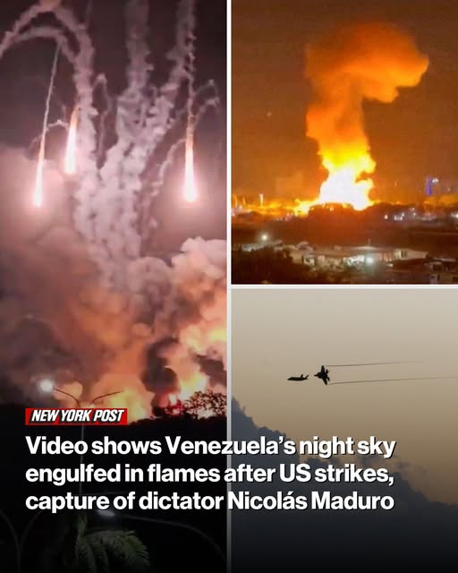 Venezuela’s night sky was engulfed in flames Saturday as the US launched large-scale strikes on the country’s capital city and captured defiant dictator Nicolás Maduro.