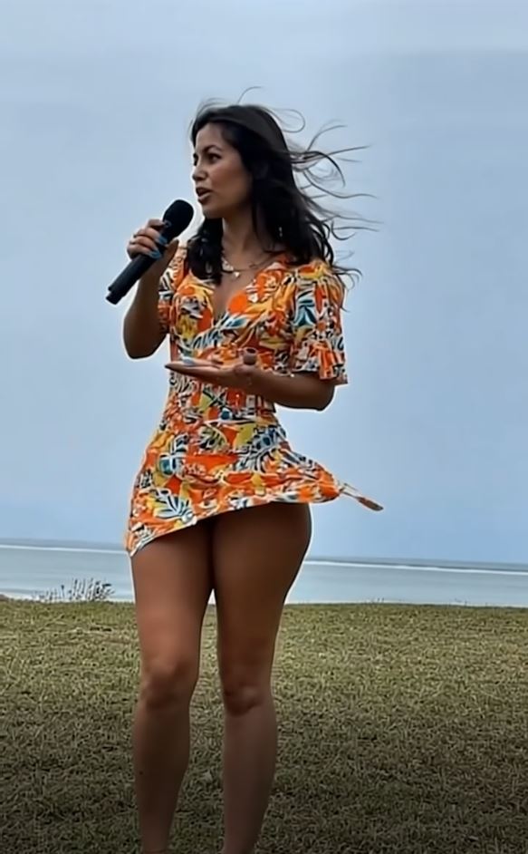During a segment being filmed outdoors, a sudden gust of wind turned an elegant moment into an unexpected viral sensation. The presenter’s dress, caught completely off guard by the breeze, created a live-on-air moment that viewers won’t soon forget.